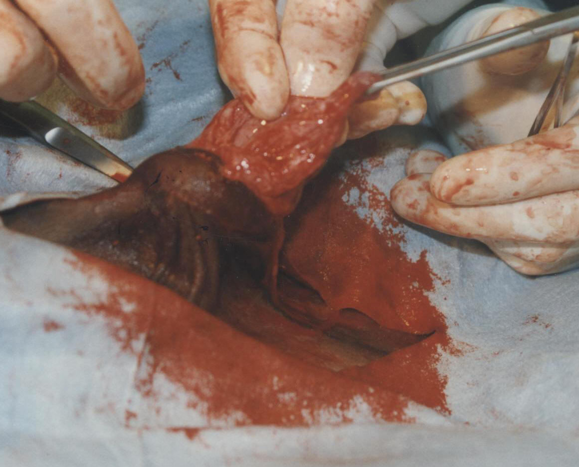 Following a routine castration, a mule colt develops subcutaneous fibrosis/hyperplasia that requires another surgery. Following a routine castration in 1998, one our mule colts, Cowboy Up, developed a growth that gave the appearance that he still had a testicle. The original procedure included the castration of two mule colts. Both mules recovered nicely and showed no signs of problems. Cowboy, however, later developed a pocket that made him look like an unaltered mule. A judge in a weanling gelding class even questioned his being gelded. Palpation revealed a seemingly fibrous mass, the cause of which was unknown. Our only option for Cowboy was exploratory surgery since the nature of the mass was a indeterminate. Of course, for cosmetic reasons we would need to remove the growth, but we had other health concerns for Cowboy. While we were certain that this probably was a simple benign mass, we wanted to rule out a number of other possibilities. The likelihood of the bowel having slipped down the inguinal ring creating a hernia that could later be strangulated was of concern and, of course, we wanted to rule out any infection or abscess. My veterinarian, Dr. Carl Gardner, contacted Tex Taylor to consult on Cowboy=s case. Tex had seen this in more mule colts than horse colts and was familiar with syndrome. Dr. Taylor agreed that it was probably just over reaction of the subcutaneous fat and scar tissue caused by the body=s healing process, but no chances should be taken in case the bowel or infection was involved. Consequently, when Cowboy was prepped for surgery, it was done with full intent to do major surgery if the veterinarians found complications that required more aggressive treatment. What follows is a photo story of Cowboy=s surgery. We were fortunate. The growth was simply fibrous tissue and fat. Cowboy recovered nicely and looks like a gelding again. Thanks again, to Dr. Carl Gardner for his surgical expertise and to Dr. Tex Taylor for his willingness to consult with other veterinarians about the health care of mules and donkeys. |